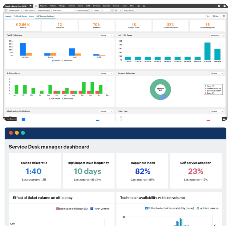 - Automação Inteligente: Reduza o trabalho manual com regras de automação, SLAs e chatbots baseados em IA (Zia).