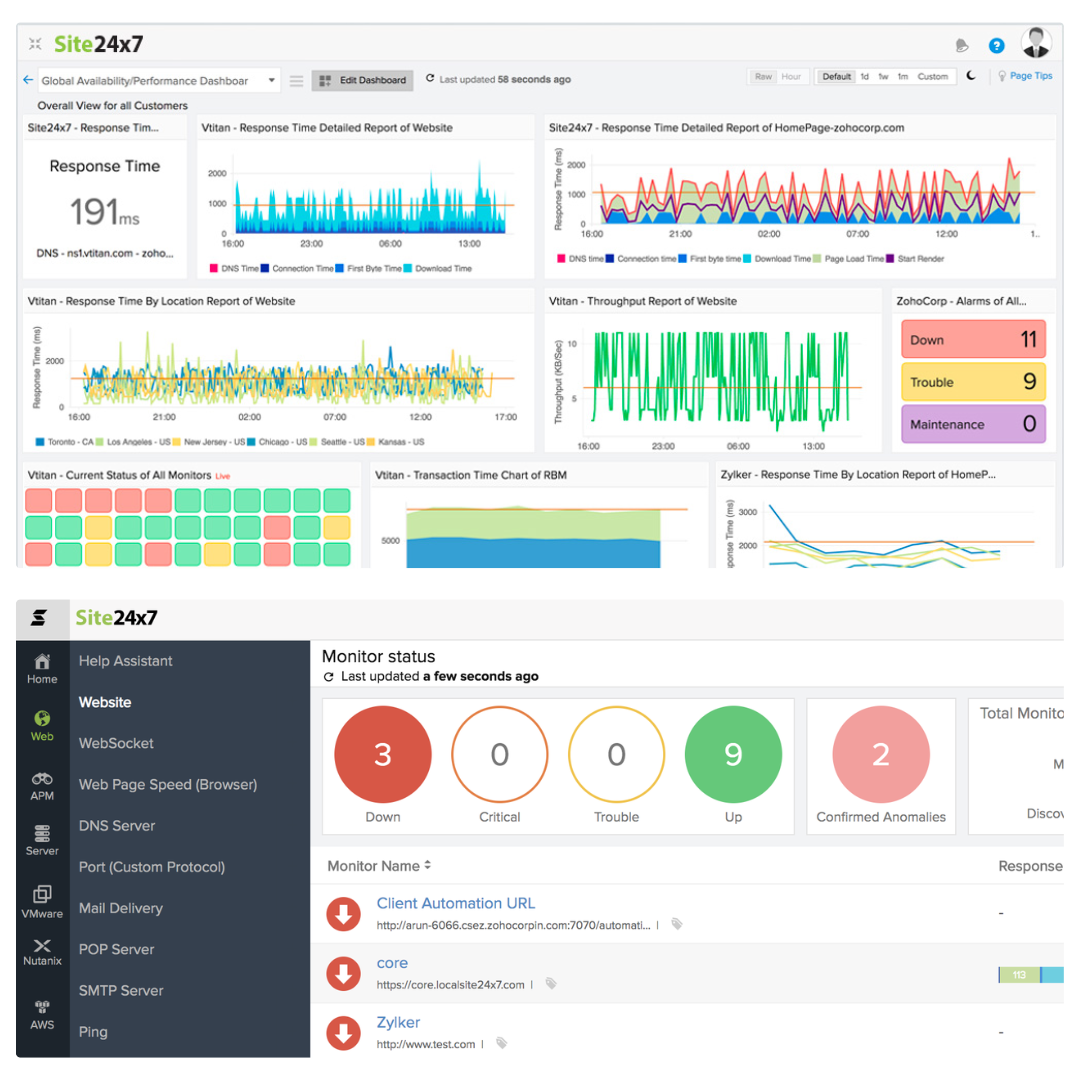 Garanta visibilidade total, desempenho superior e usuários satisfeitos com o Site24x7. Monitore tudo — da infraestrutura ao código — com uma solução escalável, intuitiva e poderosa.